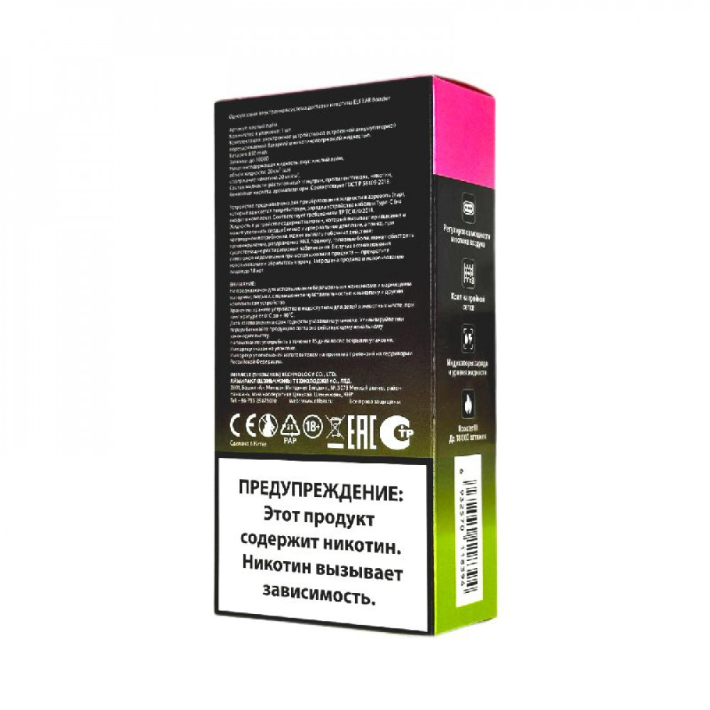 Технические характеристики Elf Bar 30000 Кислый лайм