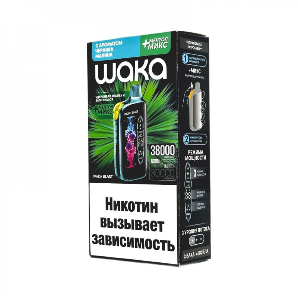 WAKA BLAST 38000 Hard - Черника малина + ментол микс - купить в Новочеркасске